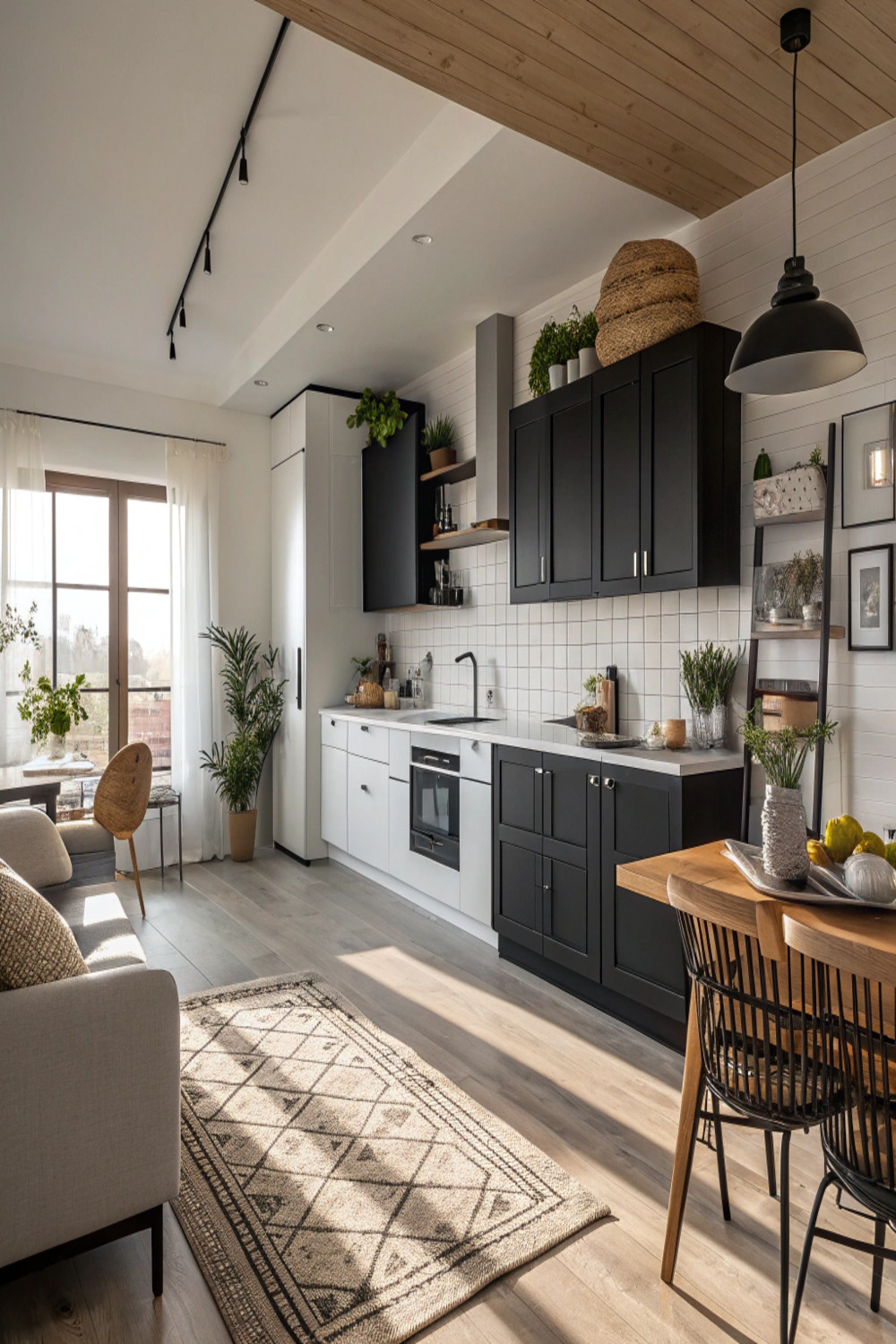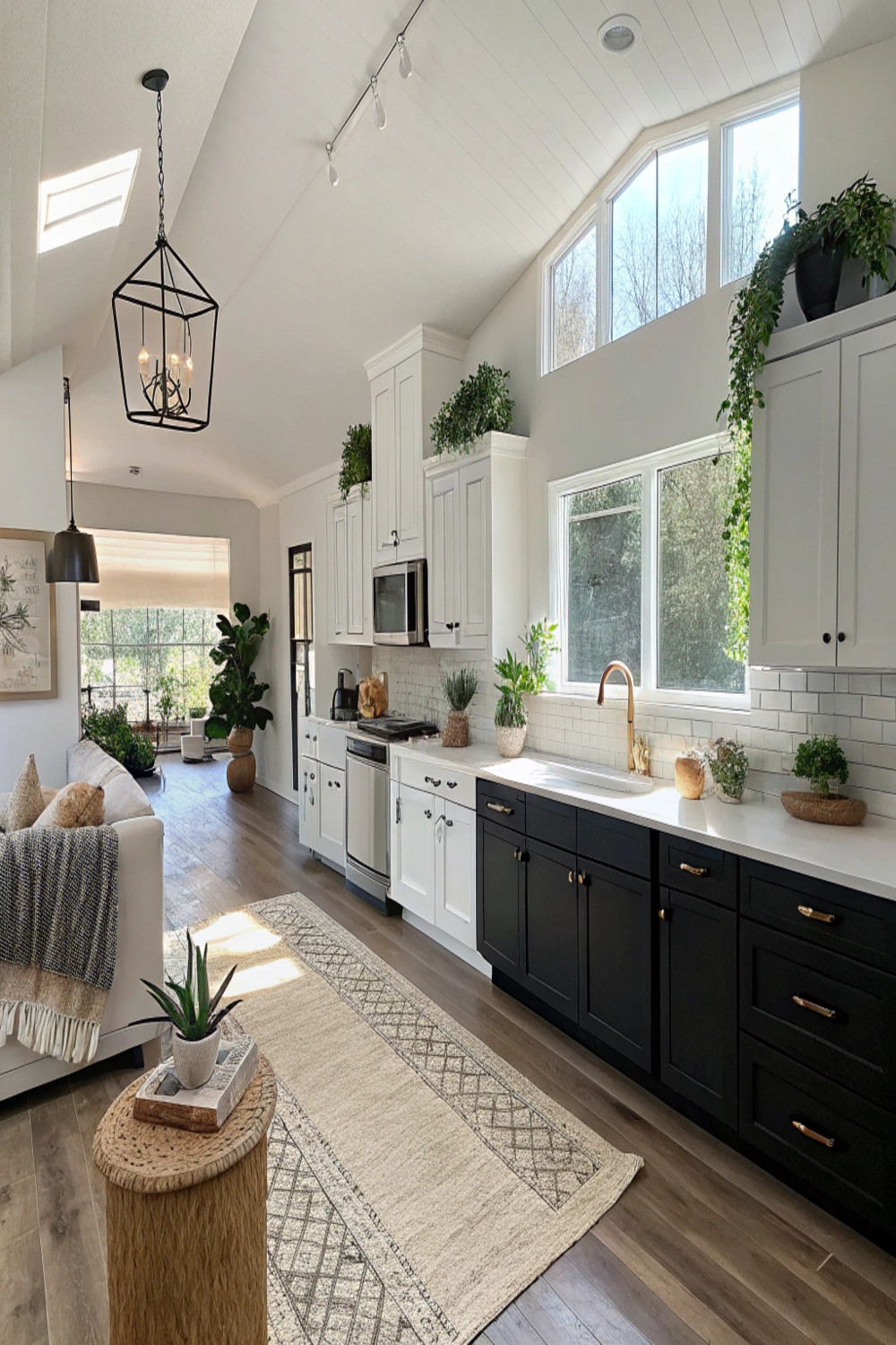 Lighting transforms the mood and functionality of your monochromatic kitchen. Natural light showcases the crisp contrast between black and white surfaces, so maximize windows when possible. If natural light is limited, consider: